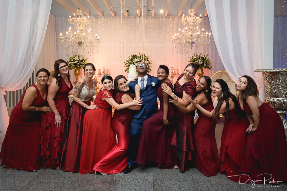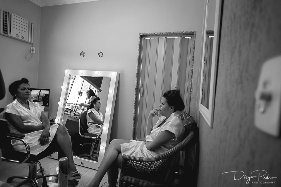 Toda uma preparação de maquiagem e penteado de Cintia aconteceu na casa de sua tia, e também contava com diversas outras madrinhas e também alguns padrinhos se arrumando lá.