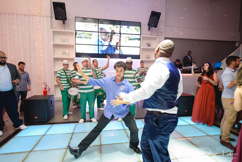 Pensem em um pessoal animado. Agora multiplicação, e teve escola de samba para agitar ainda mais a festa.