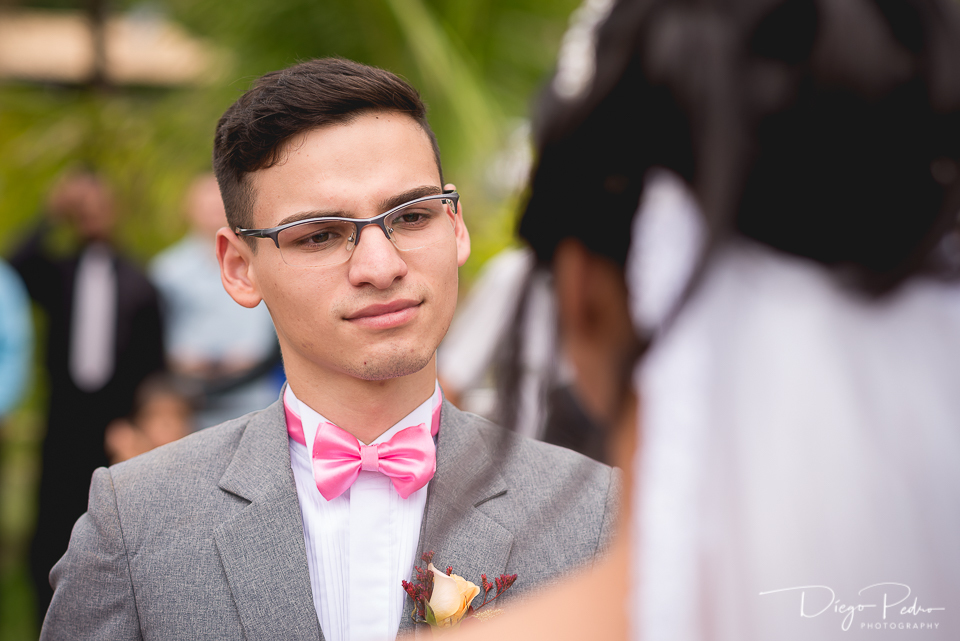 Aquele amor de infância que vira de forma adulta, marcada por muito sentimento das famílias, que estavam muito emocionadas, foi muito comovente ouvir e ver os votos que ambos declararam.
