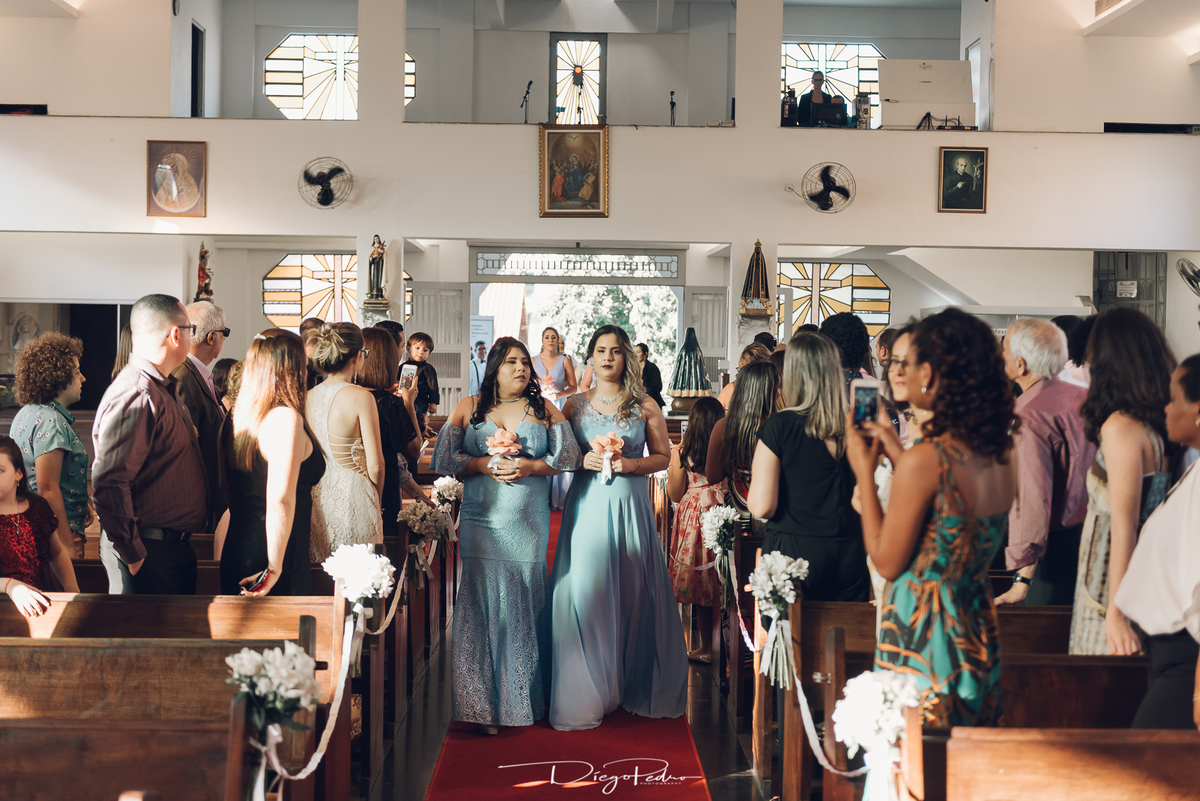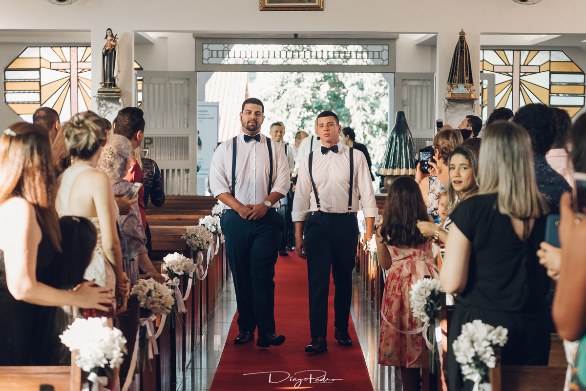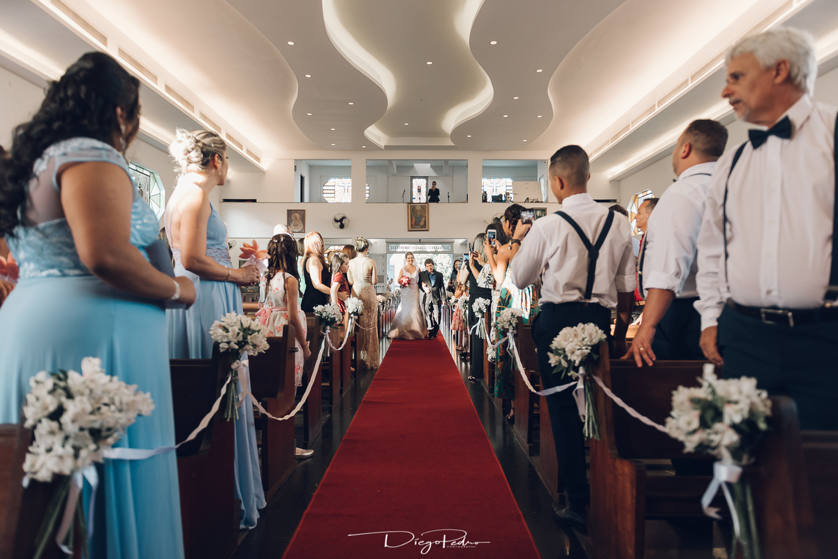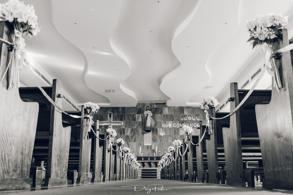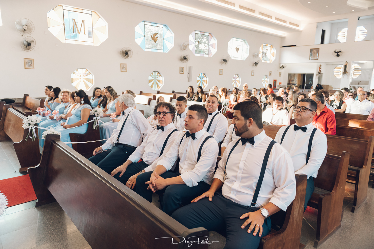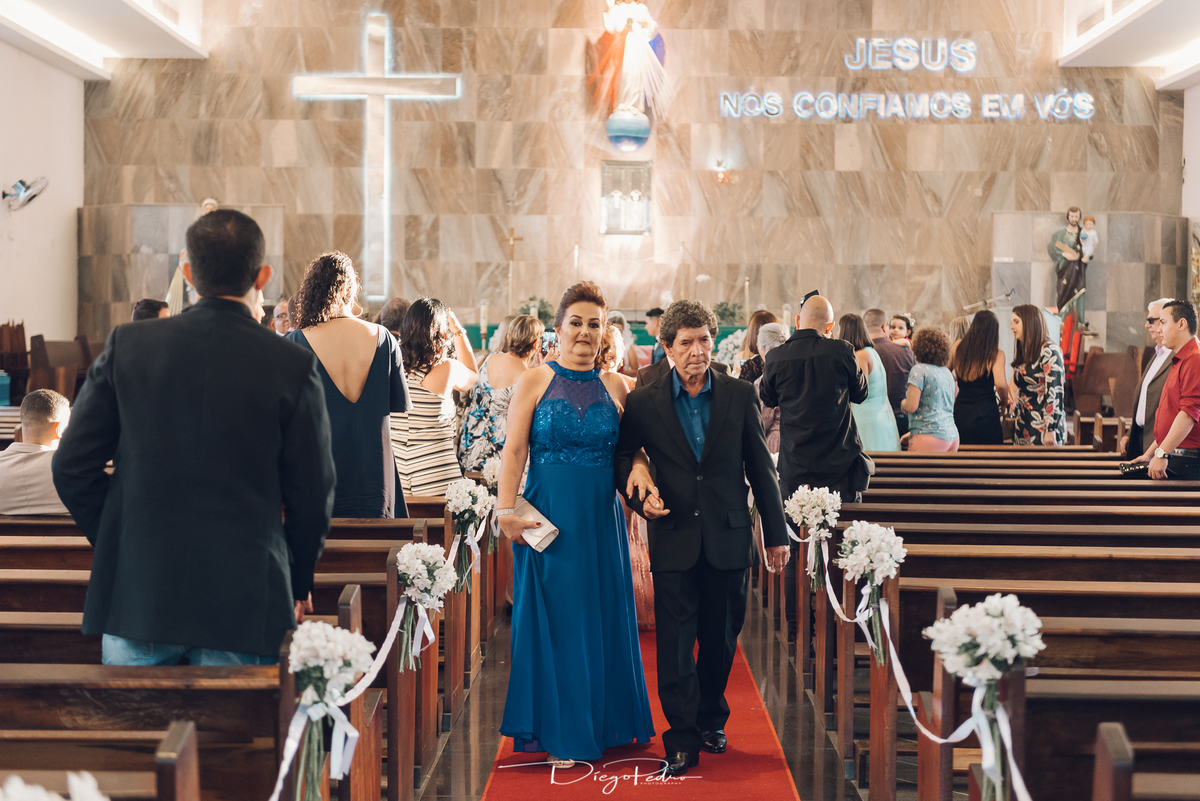 Chegando no local da Igreja tudo ocorre perfeitamente bem, padrinhos e madrinhas todos muito bem alinhados e organizados, além de felizes por estarem ali. E Guilherme já aguardava a chegada de Carla, era um misto de ansiedade e preocupação para não atrasar, pois nas igrejas católicas na maioria tem isso, se atrasar paga a mais, rs mas correu tudo direitinho, saí de lá as pressas quando terminou a cerimônia, para poder conseguir logo uma vaga para estacionar o mais próximo possível da entrada do salão de festa, que por sinal já fotografei diversas vezes lá no Espaço Luz.