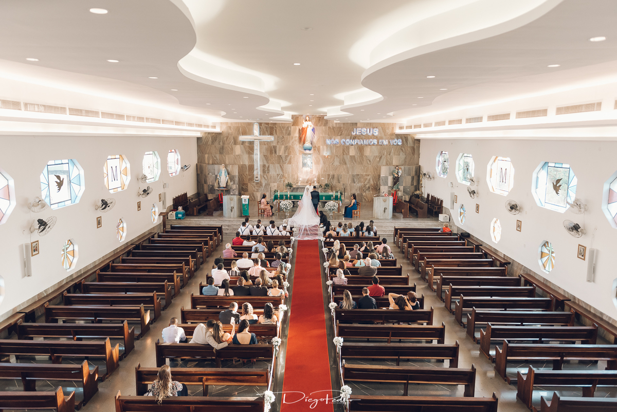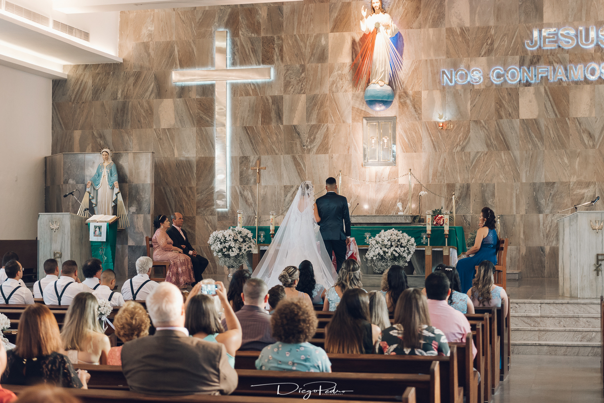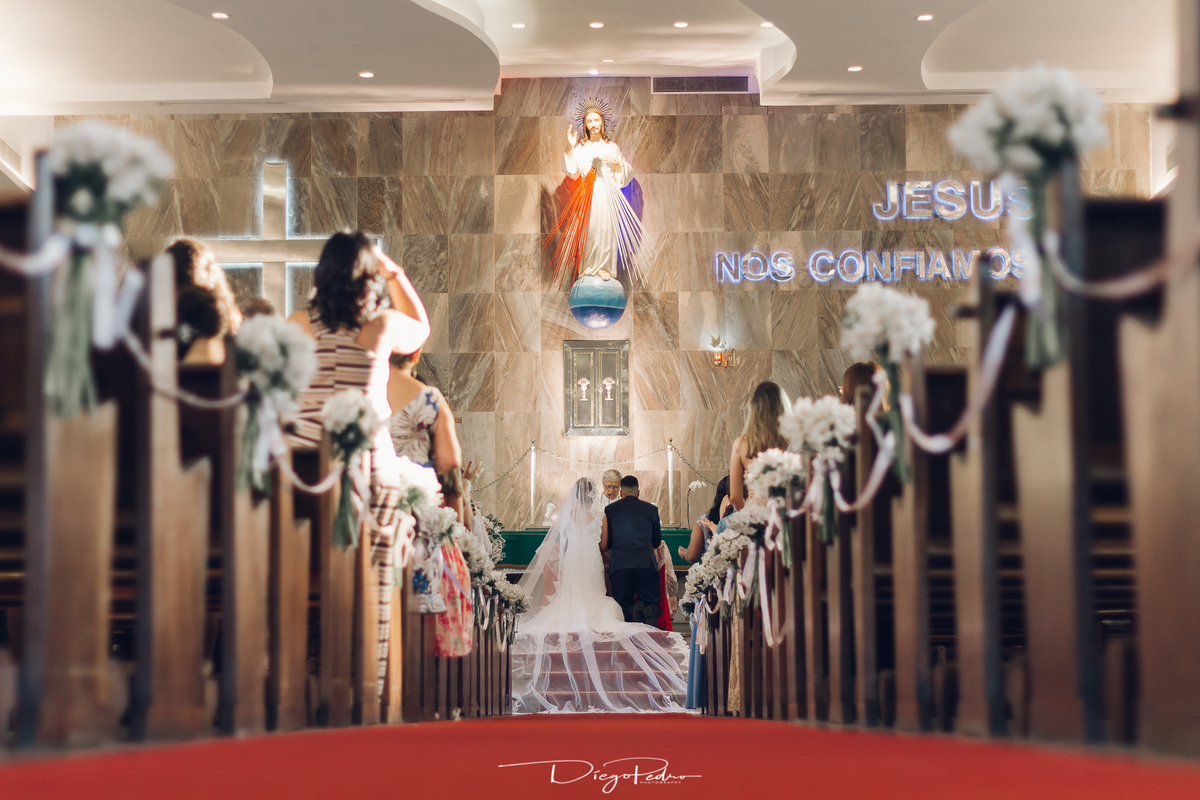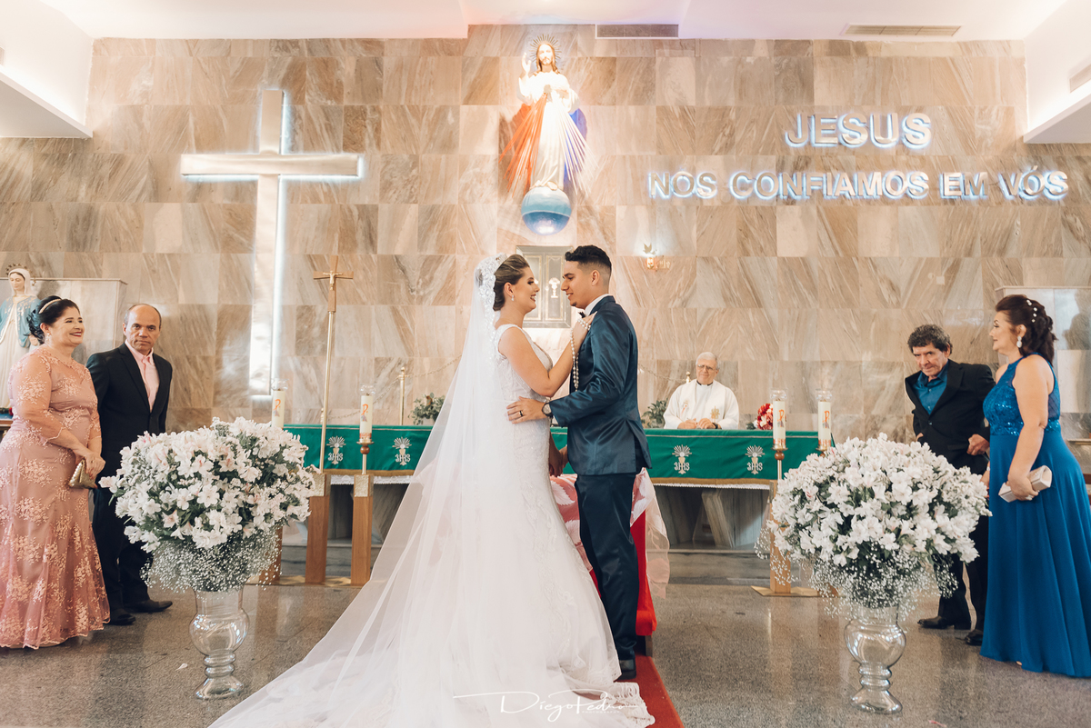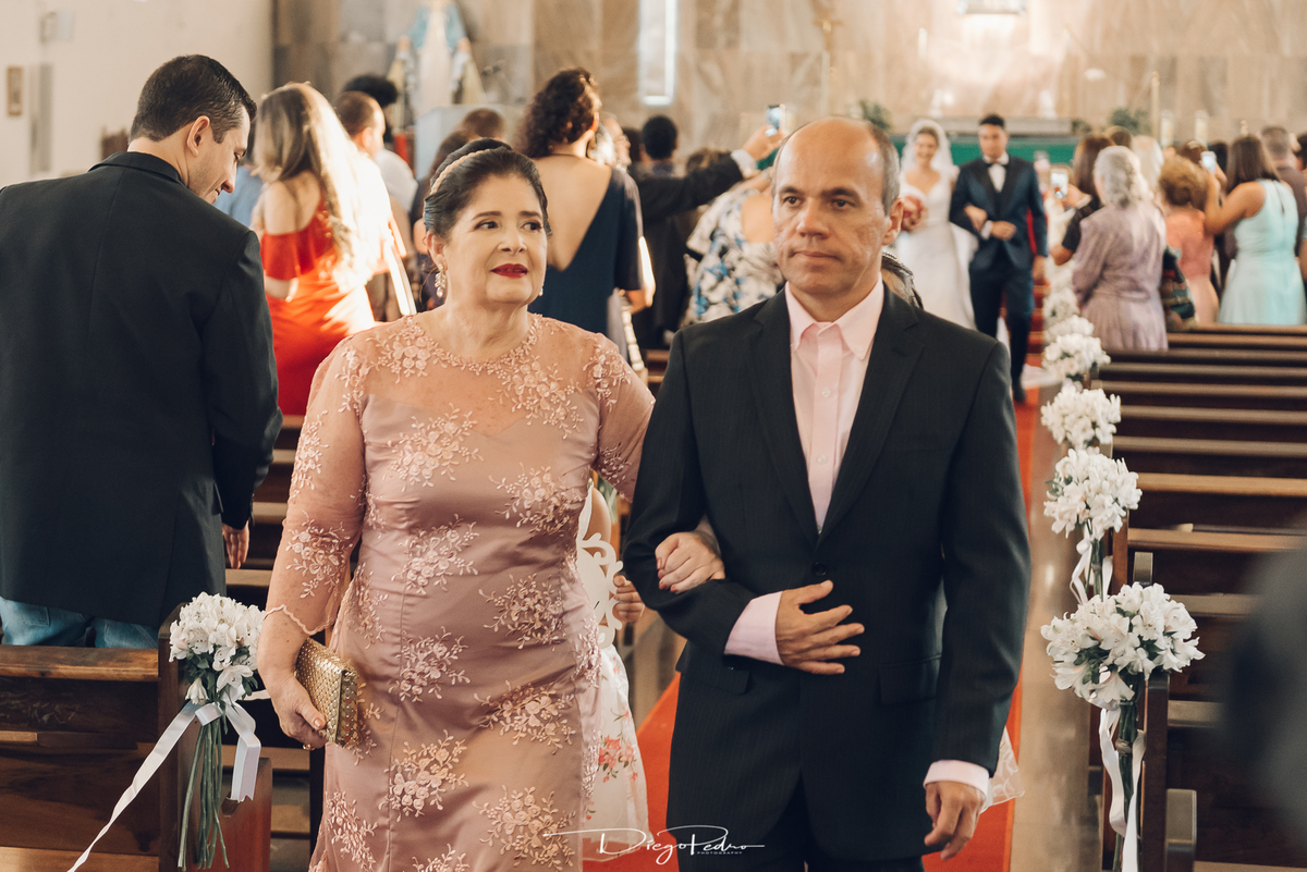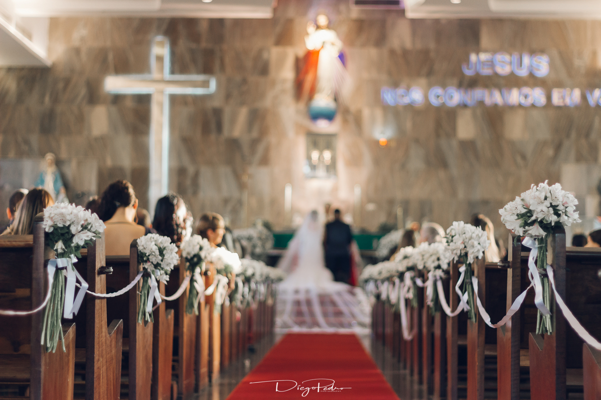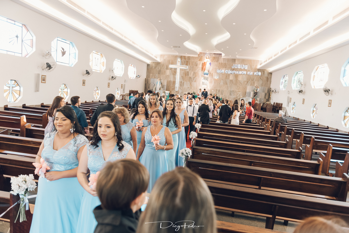 Chegando no local da Igreja tudo ocorre perfeitamente bem, padrinhos e madrinhas todos muito bem alinhados e organizados, além de felizes por estarem ali. E Guilherme já aguardava a chegada de Carla, era um misto de ansiedade e preocupação para não atrasar, pois nas igrejas católicas na maioria tem isso, se atrasar paga a mais, rs mas correu tudo direitinho, saí de lá as pressas quando terminou a cerimônia, para poder conseguir logo uma vaga para estacionar o mais próximo possível da entrada do salão de festa, que por sinal já fotografei diversas vezes lá no Espaço Luz.