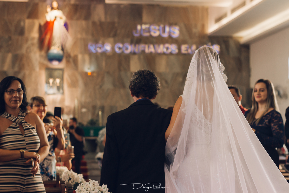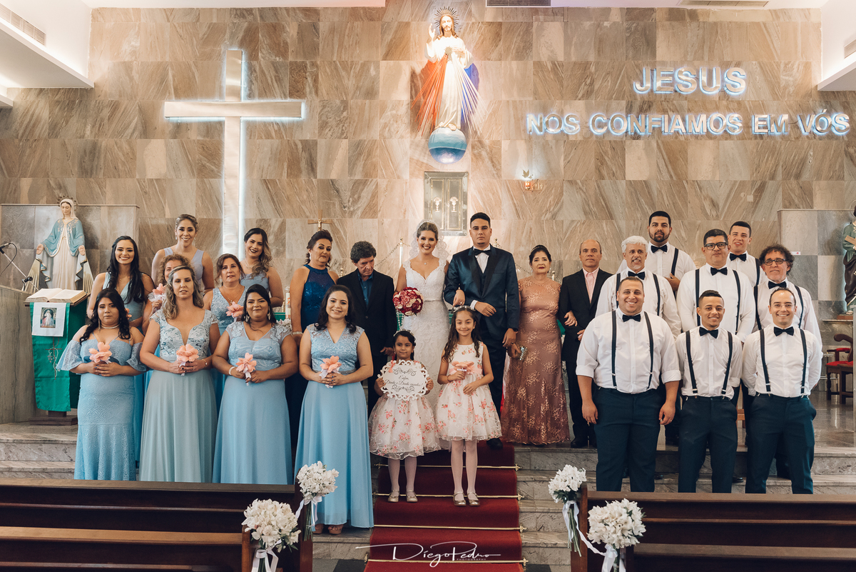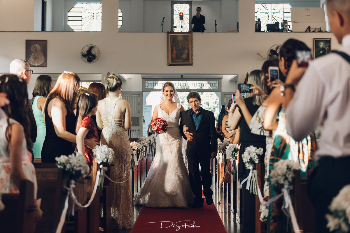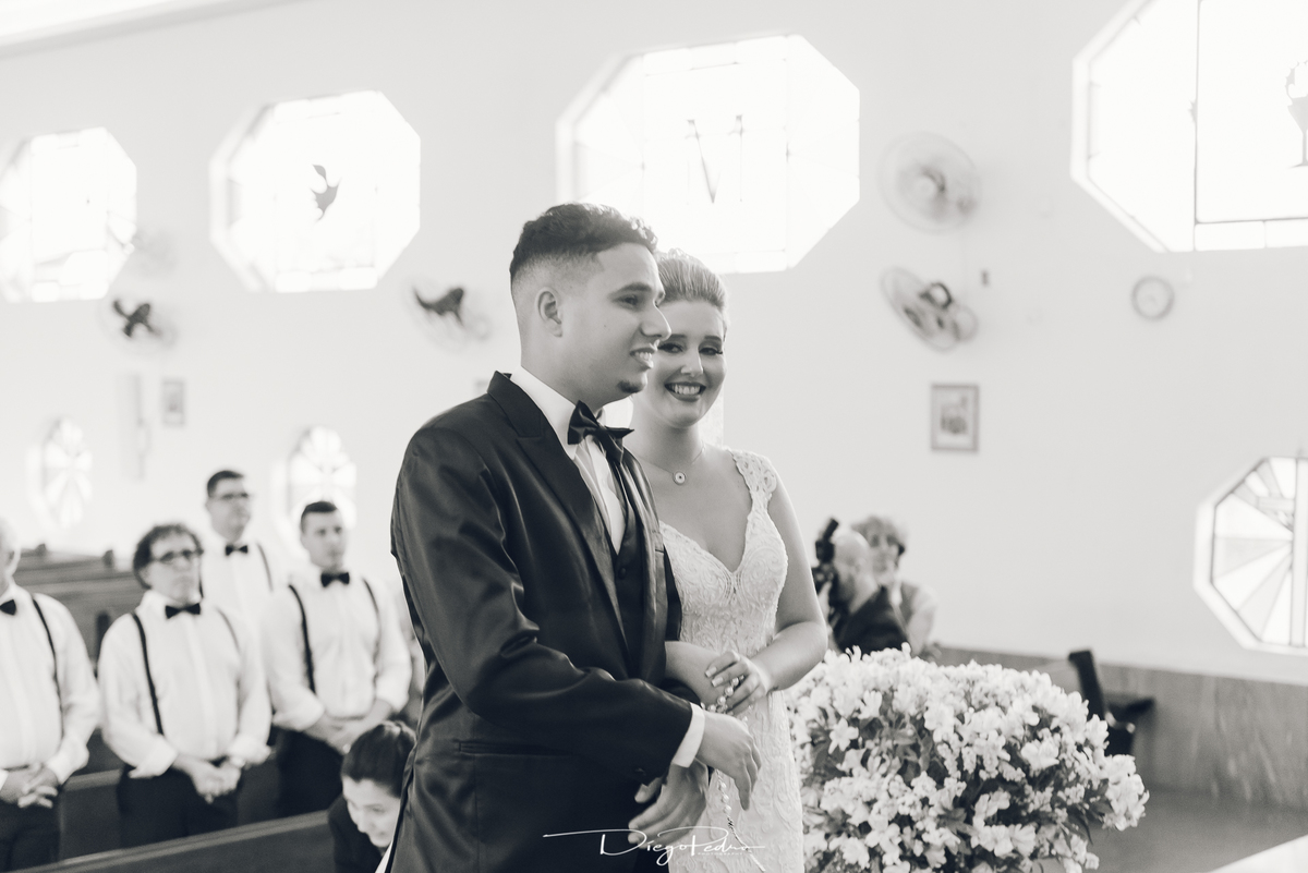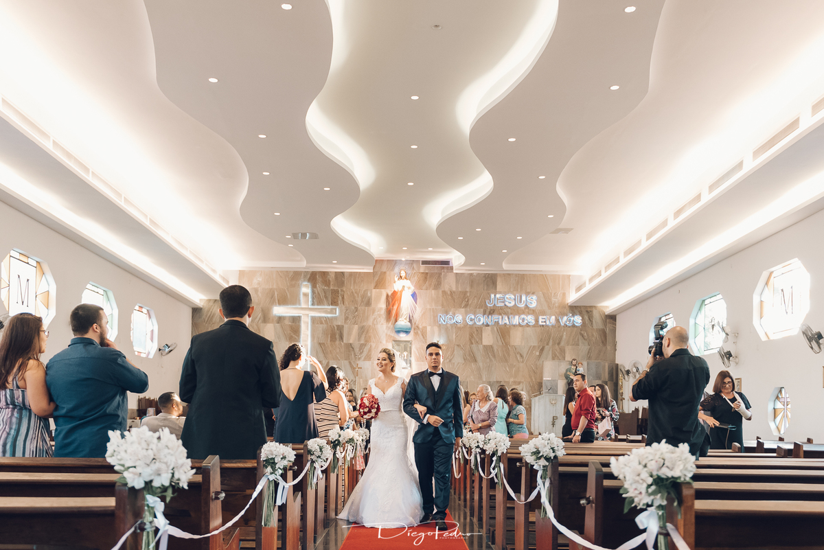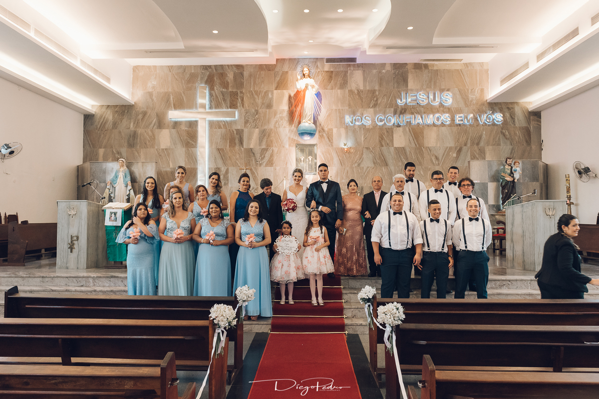 Chegando no local da Igreja tudo ocorre perfeitamente bem, padrinhos e madrinhas todos muito bem alinhados e organizados, além de felizes por estarem ali. E Guilherme já aguardava a chegada de Carla, era um misto de ansiedade e preocupação para não atrasar, pois nas igrejas católicas na maioria tem isso, se atrasar paga a mais, rs mas correu tudo direitinho, saí de lá as pressas quando terminou a cerimônia, para poder conseguir logo uma vaga para estacionar o mais próximo possível da entrada do salão de festa, que por sinal já fotografei diversas vezes lá no Espaço Luz.