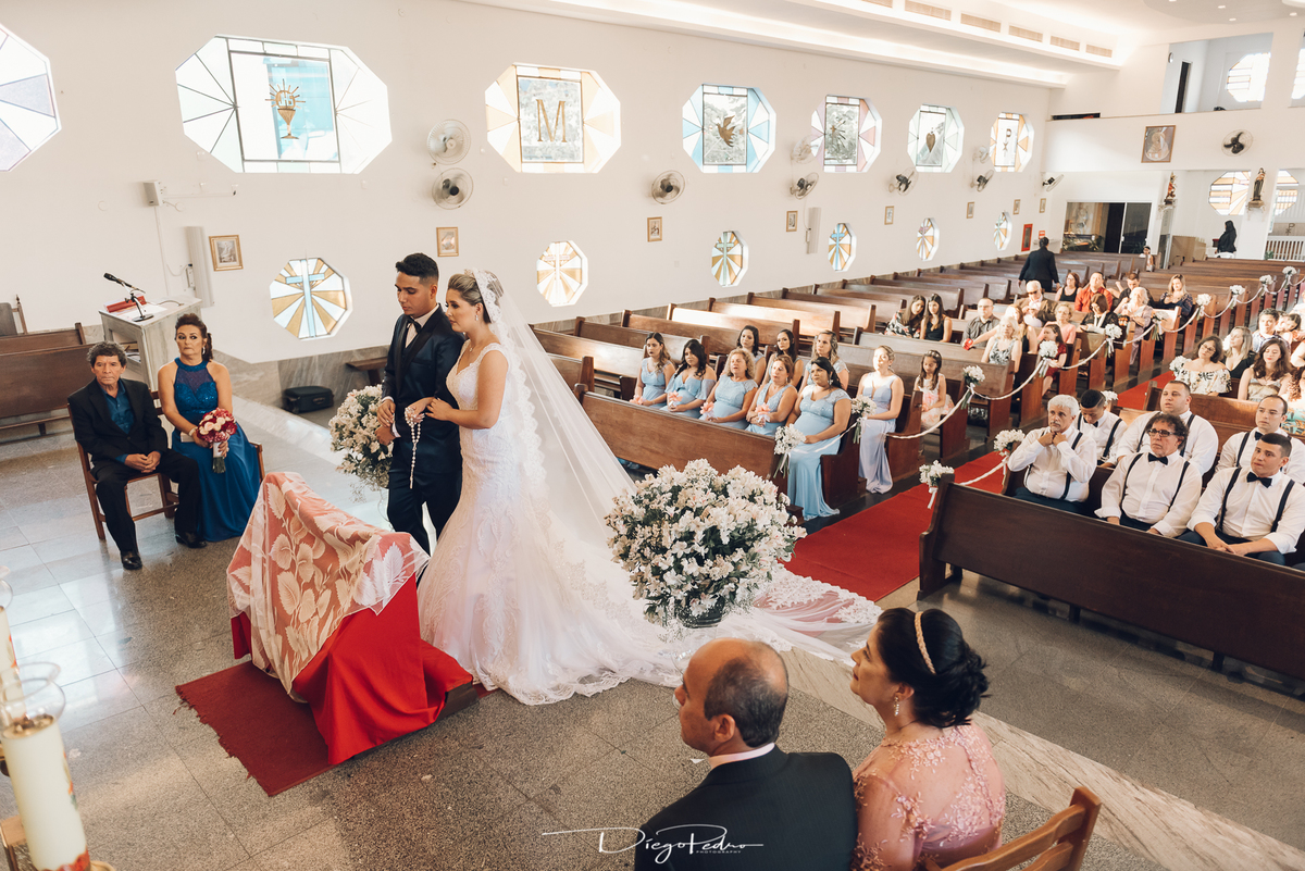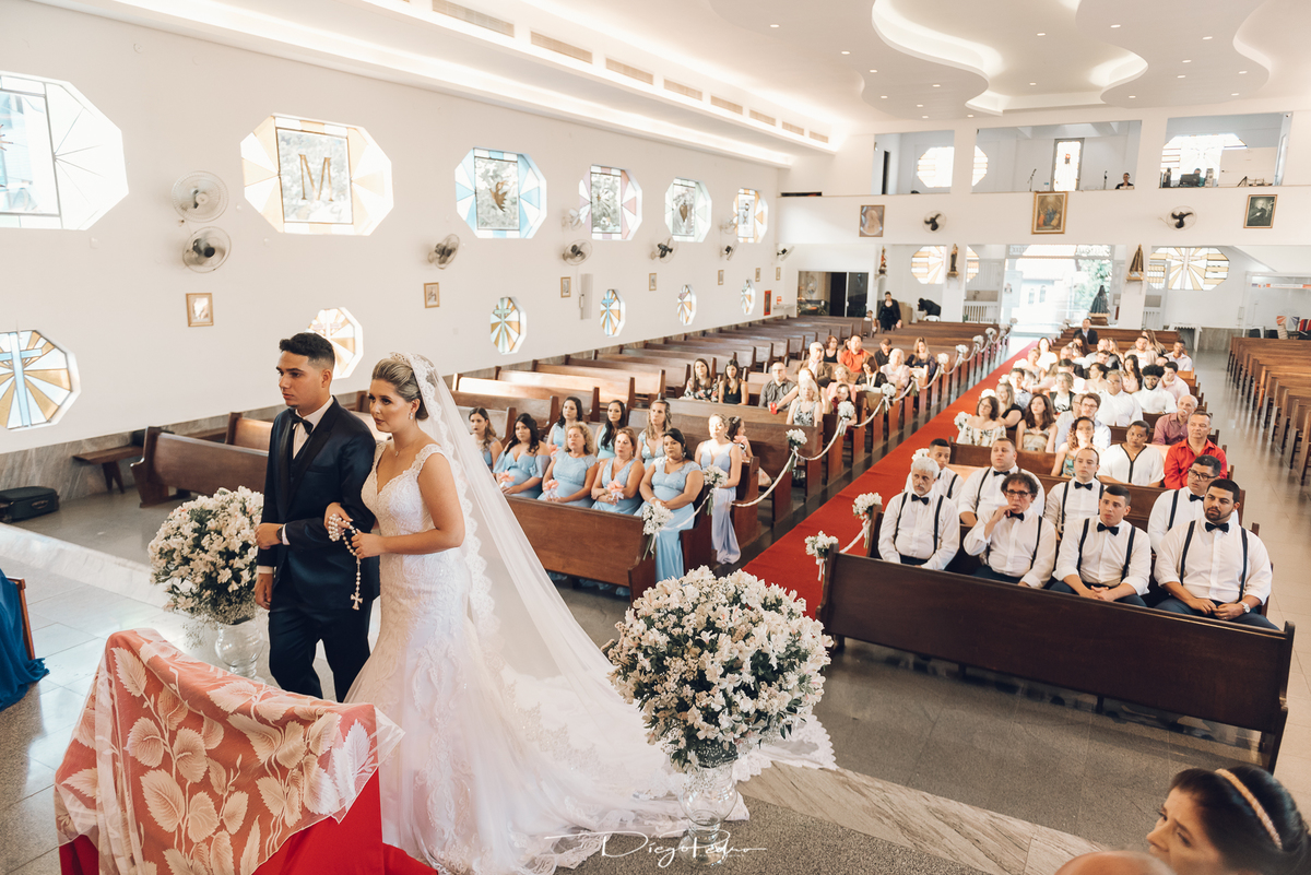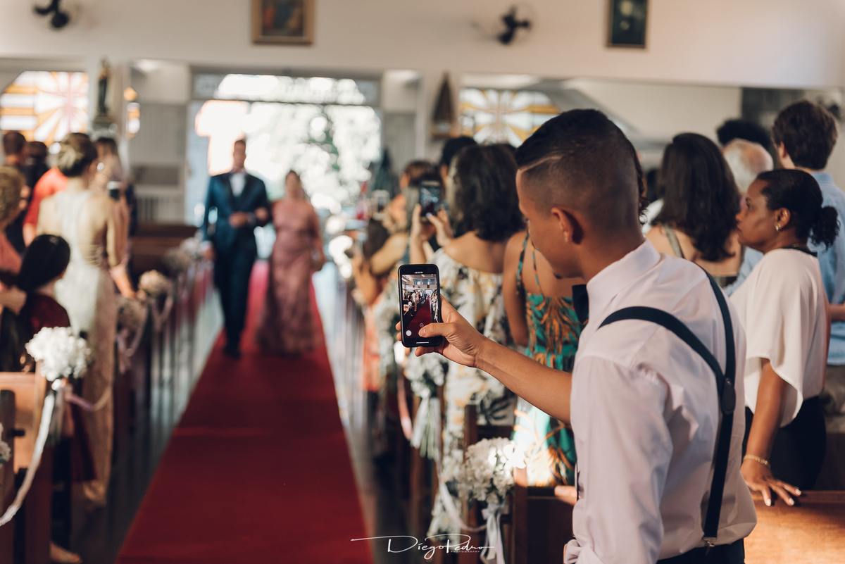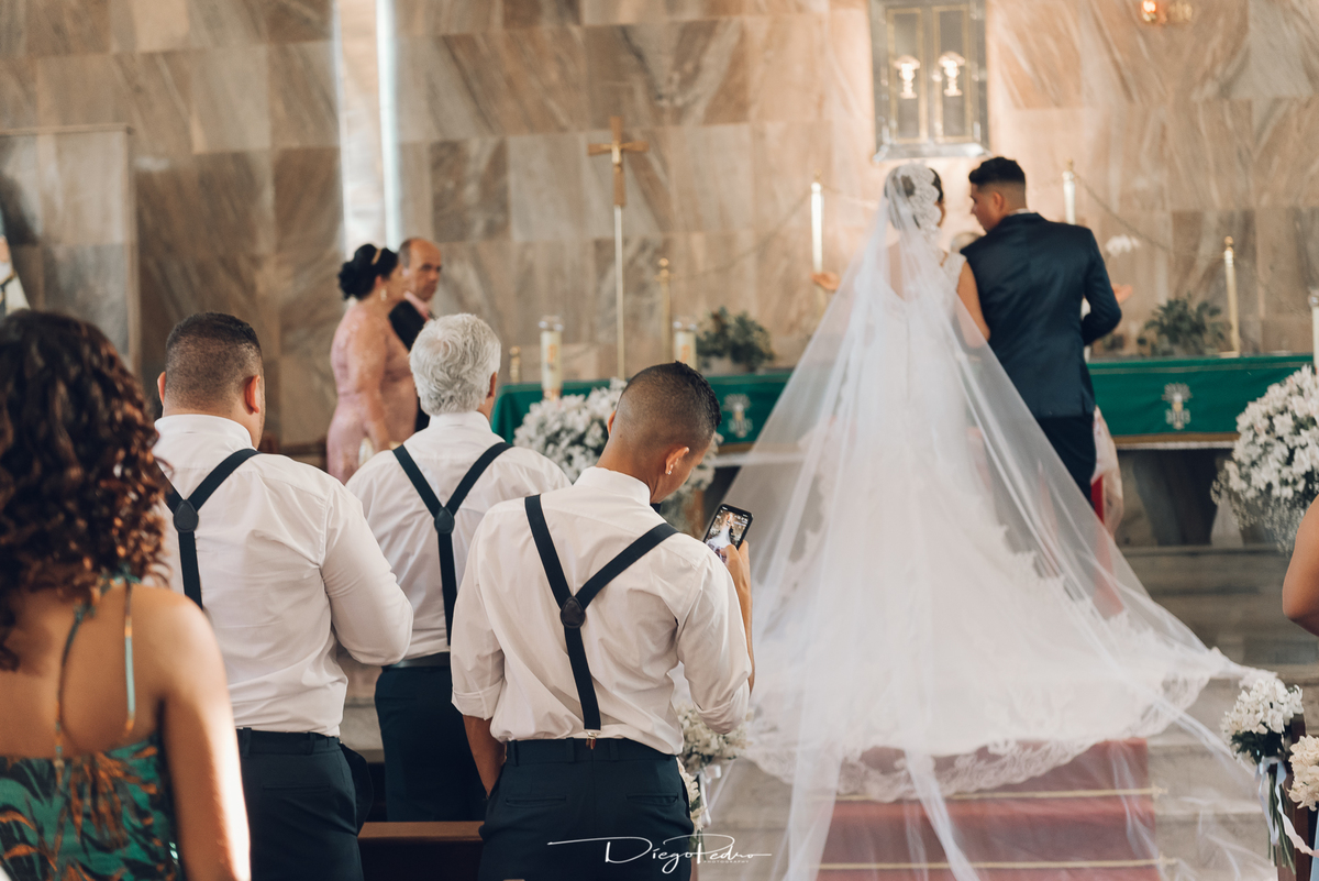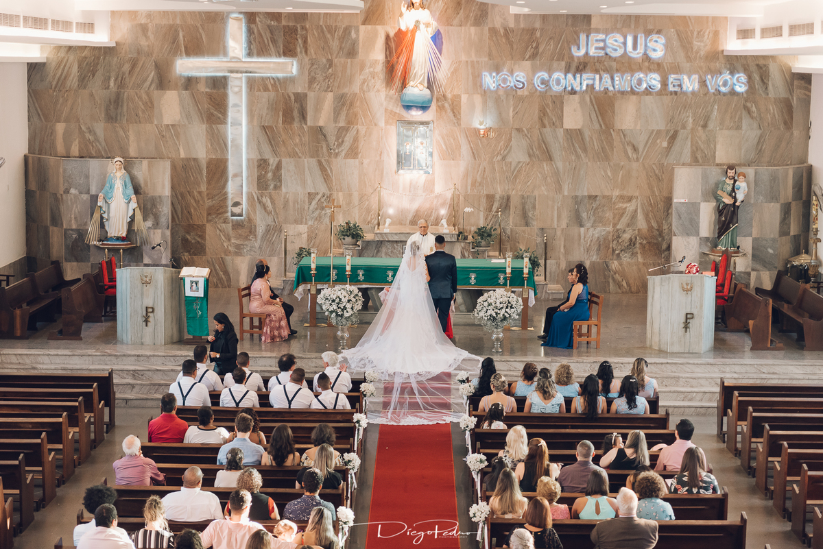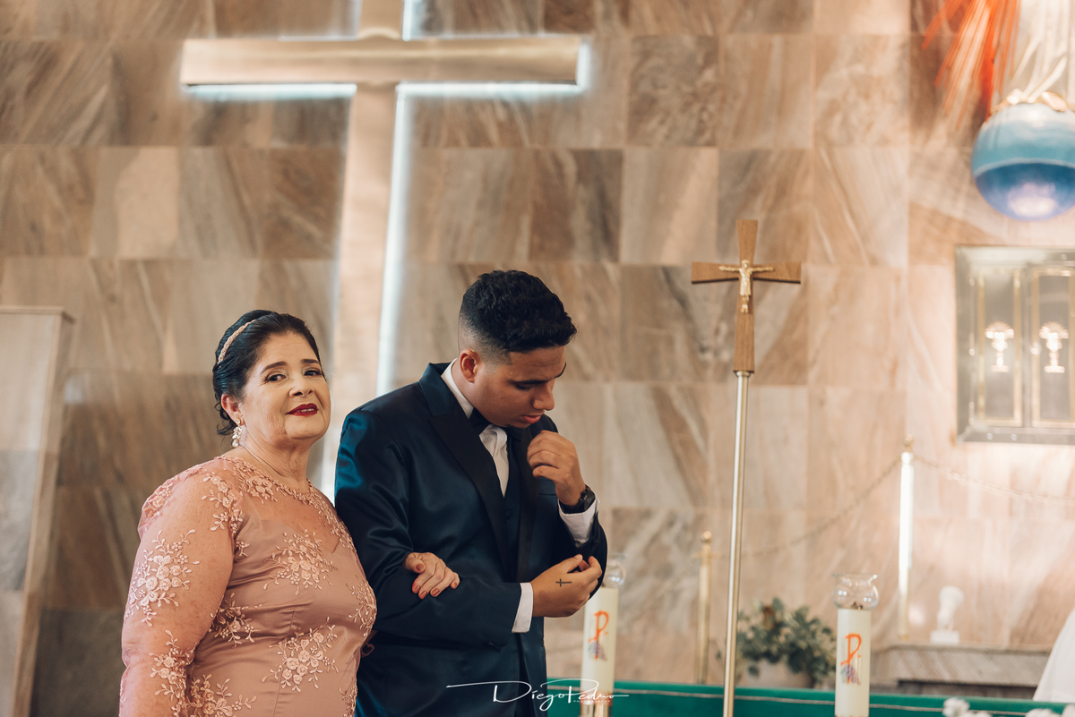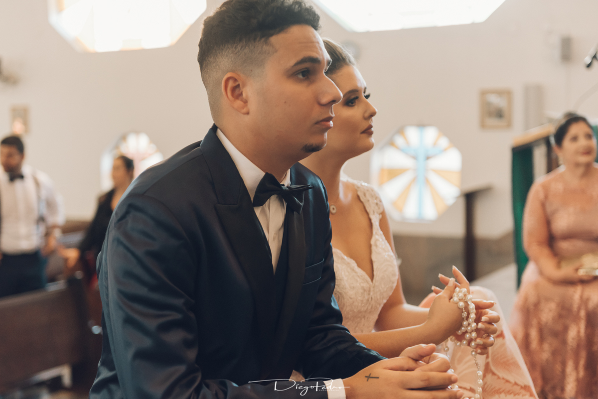Chegando no local da Igreja tudo ocorre perfeitamente bem, padrinhos e madrinhas todos muito bem alinhados e organizados, além de felizes por estarem ali. E Guilherme já aguardava a chegada de Carla, era um misto de ansiedade e preocupação para não atrasar, pois nas igrejas católicas na maioria tem isso, se atrasar paga a mais, rs mas correu tudo direitinho, saí de lá as pressas quando terminou a cerimônia, para poder conseguir logo uma vaga para estacionar o mais próximo possível da entrada do salão de festa, que por sinal já fotografei diversas vezes lá no Espaço Luz.