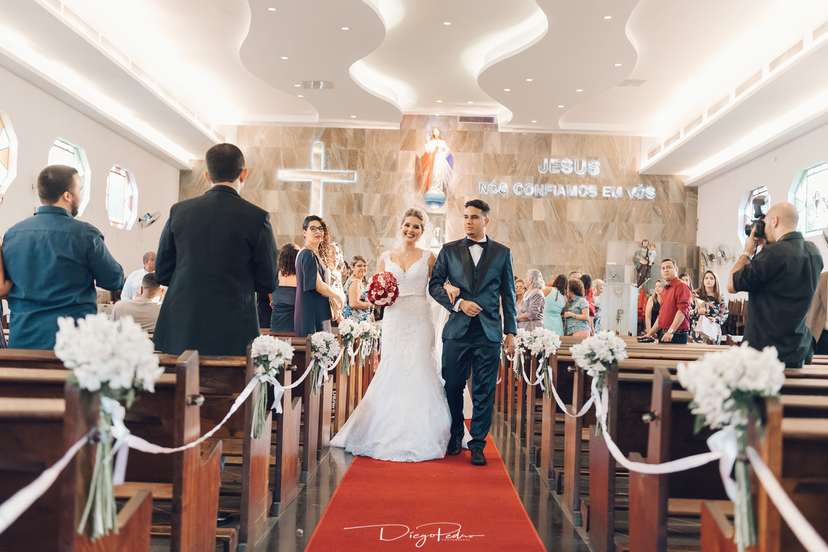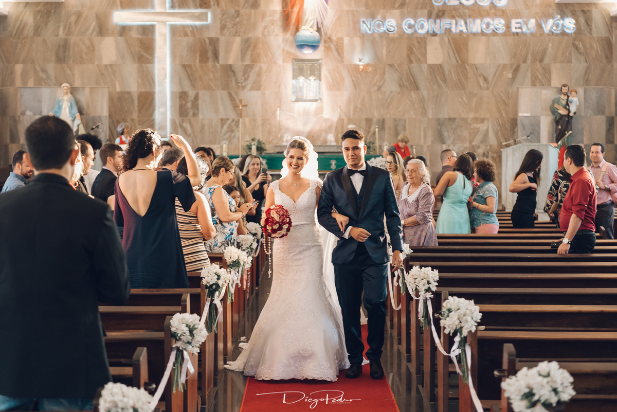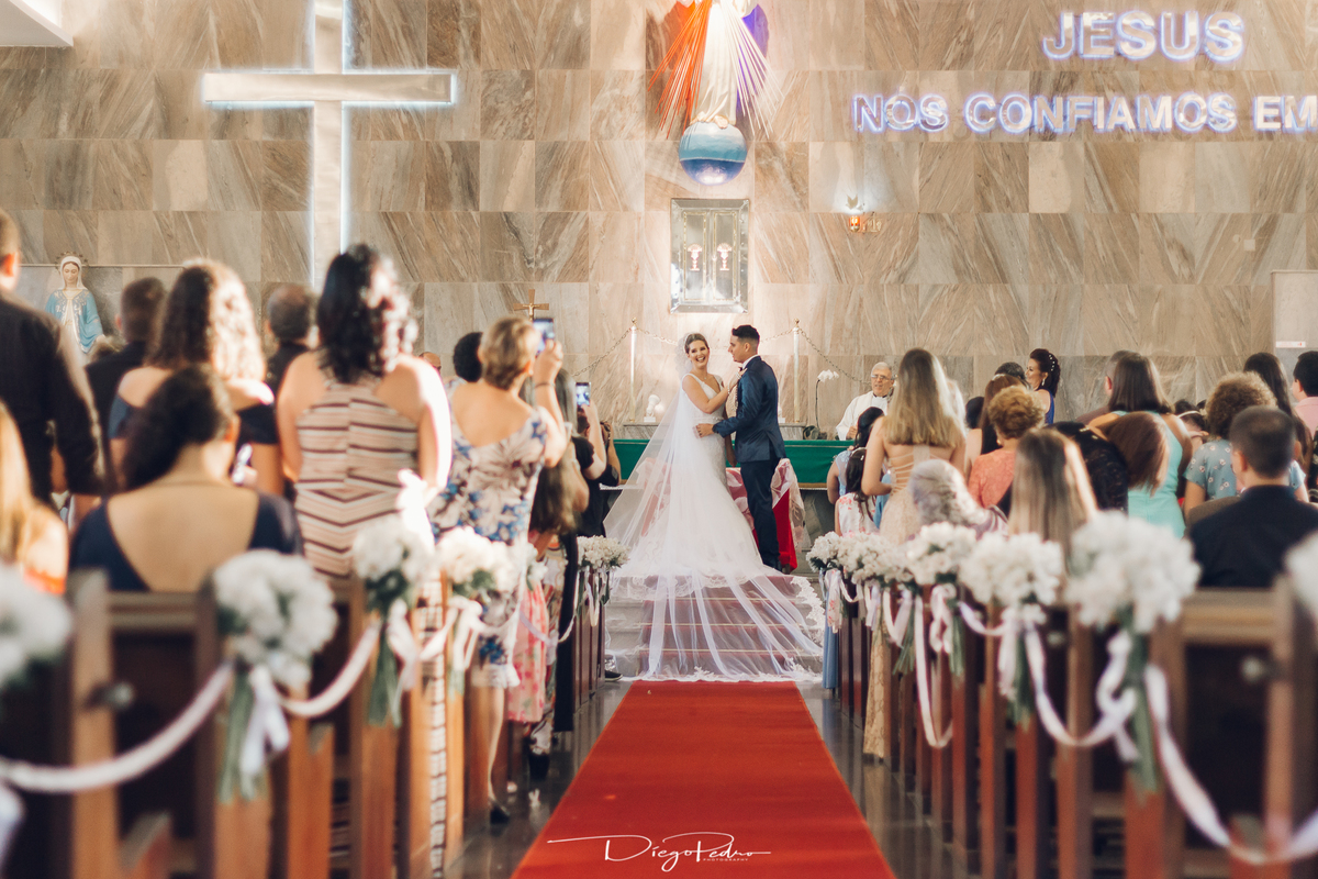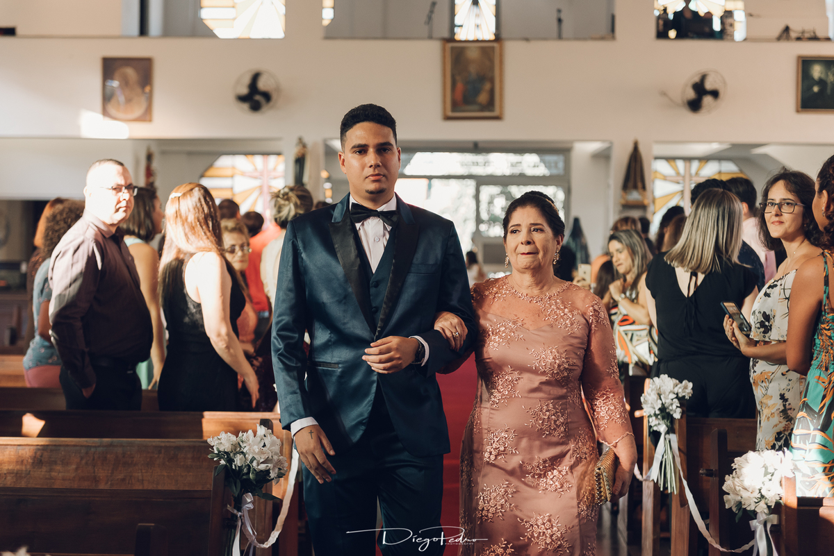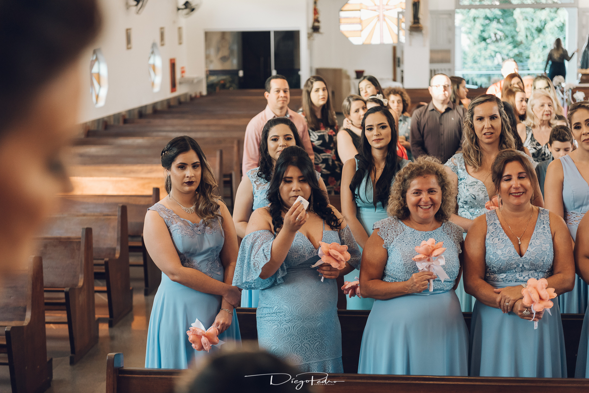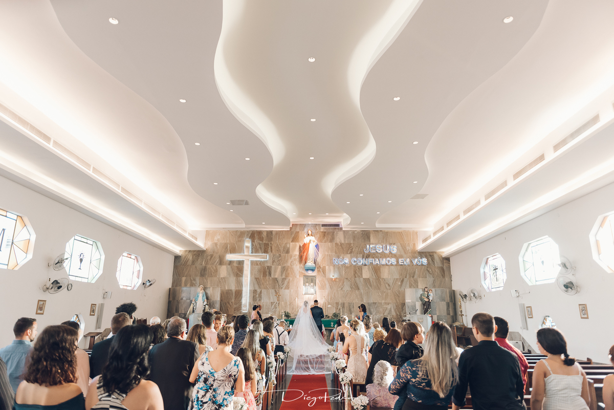 Chegando no local da Igreja tudo ocorre perfeitamente bem, padrinhos e madrinhas todos muito bem alinhados e organizados, além de felizes por estarem ali. E Guilherme já aguardava a chegada de Carla, era um misto de ansiedade e preocupação para não atrasar, pois nas igrejas católicas na maioria tem isso, se atrasar paga a mais, rs mas correu tudo direitinho, saí de lá as pressas quando terminou a cerimônia, para poder conseguir logo uma vaga para estacionar o mais próximo possível da entrada do salão de festa, que por sinal já fotografei diversas vezes lá no Espaço Luz.
