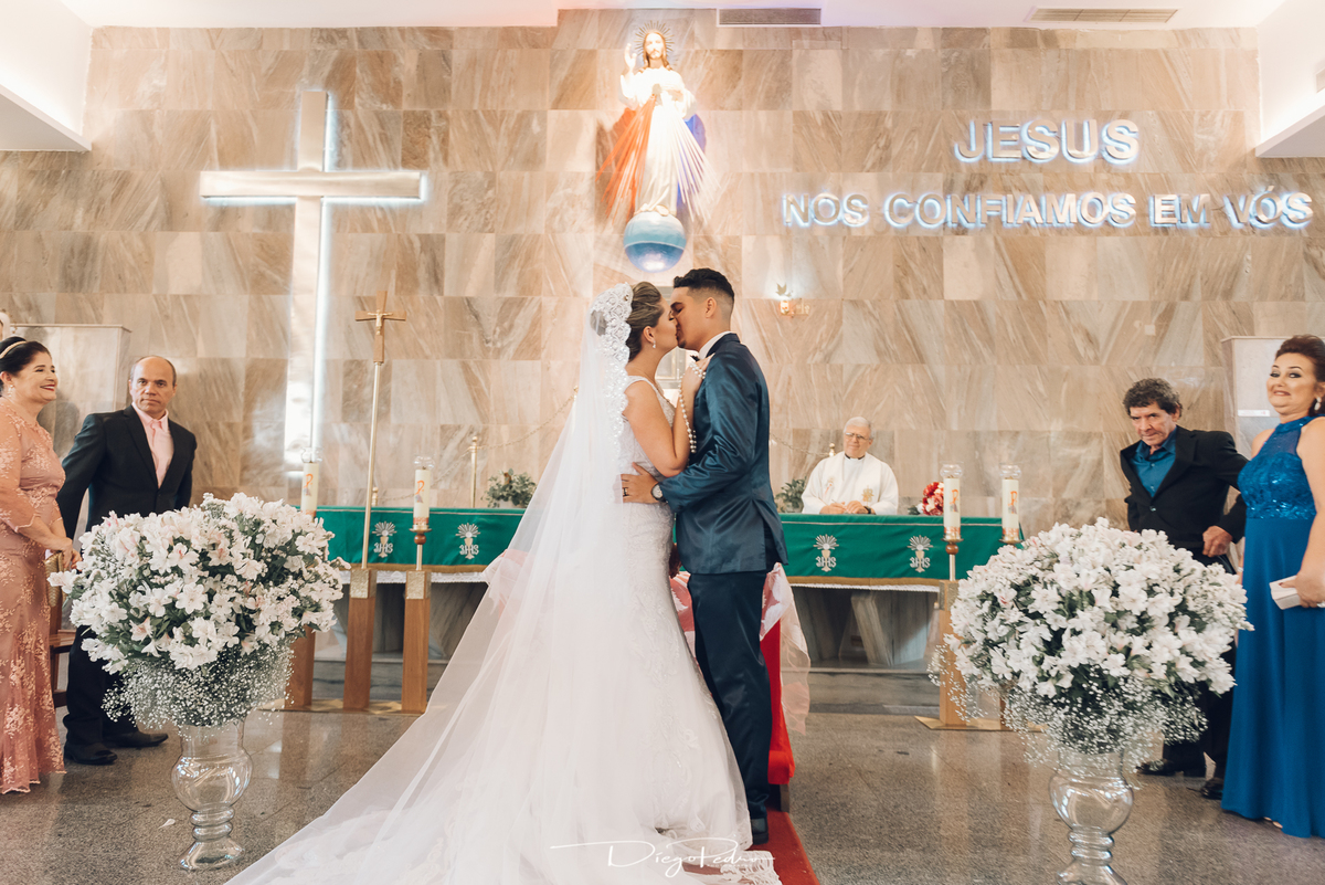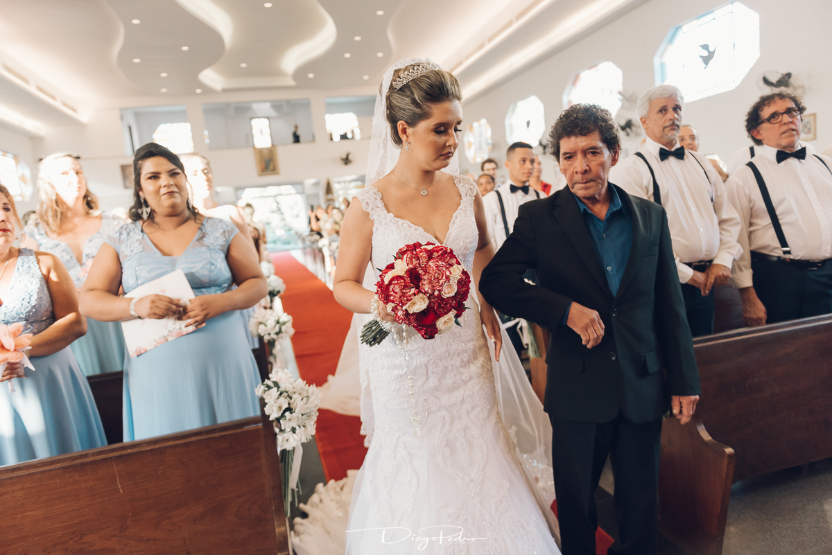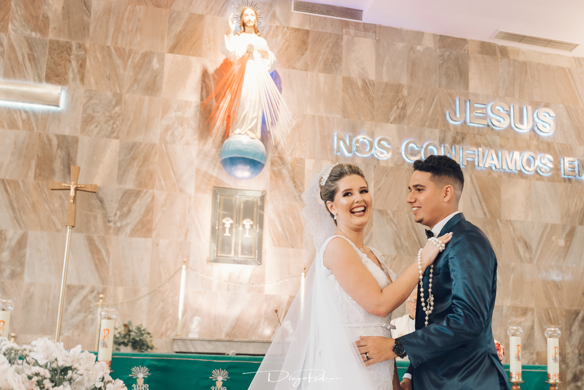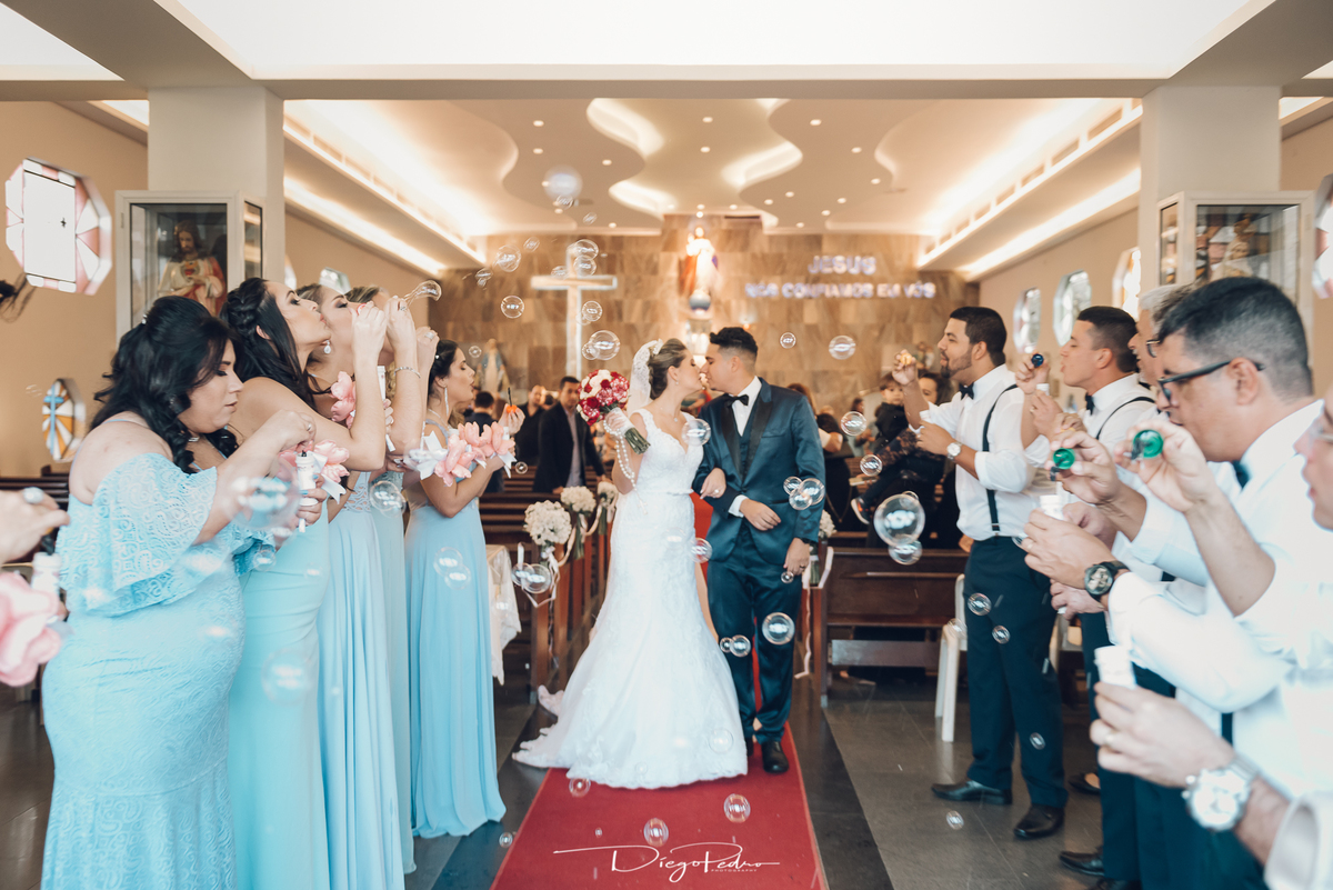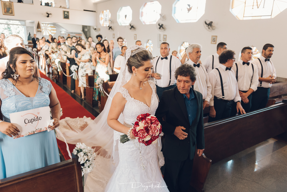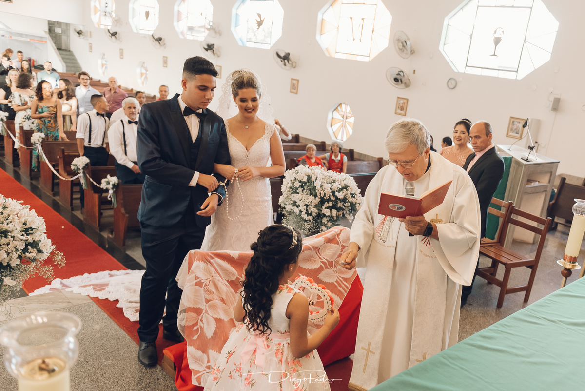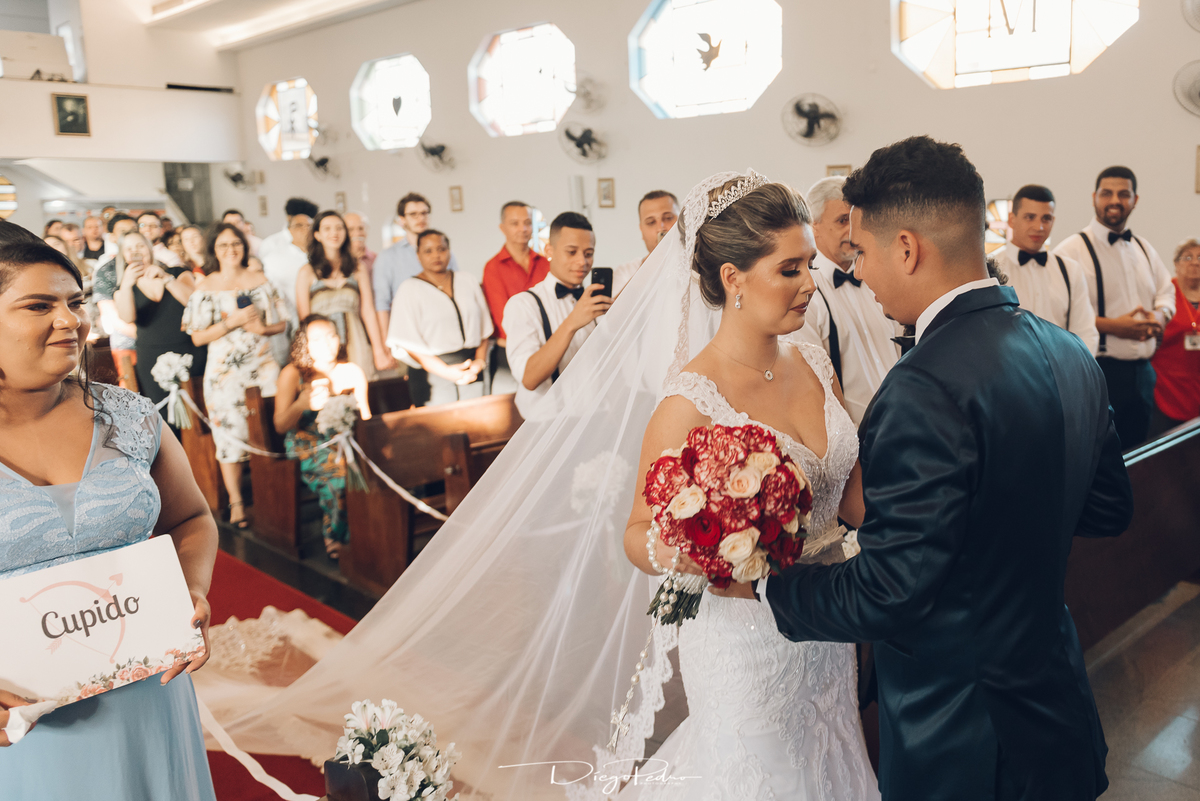 Chegando no local da Igreja tudo ocorre perfeitamente bem, padrinhos e madrinhas todos muito bem alinhados e organizados, além de felizes por estarem ali. E Guilherme já aguardava a chegada de Carla, era um misto de ansiedade e preocupação para não atrasar, pois nas igrejas católicas na maioria tem isso, se atrasar paga a mais, rs mas correu tudo direitinho, saí de lá as pressas quando terminou a cerimônia, para poder conseguir logo uma vaga para estacionar o mais próximo possível da entrada do salão de festa, que por sinal já fotografei diversas vezes lá no Espaço Luz.