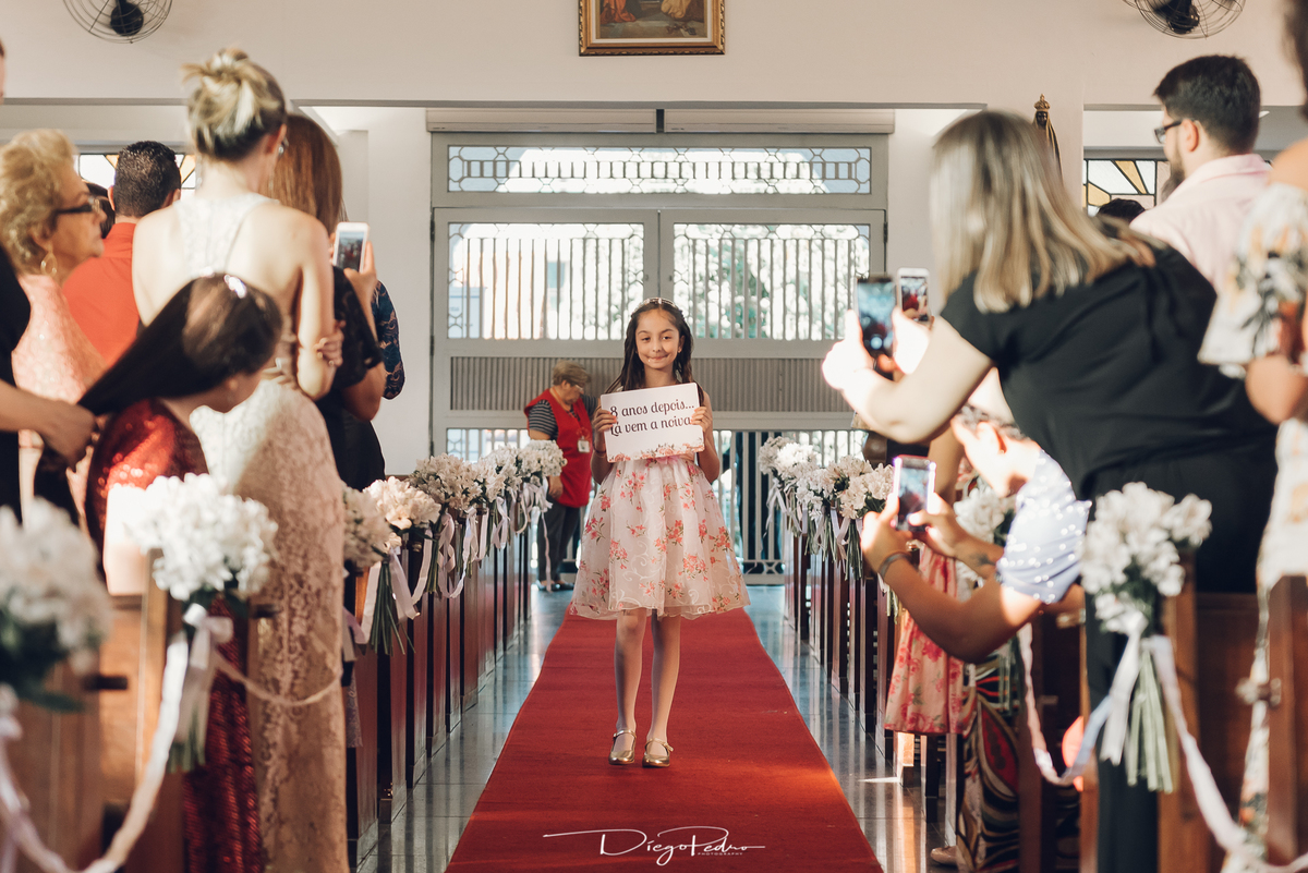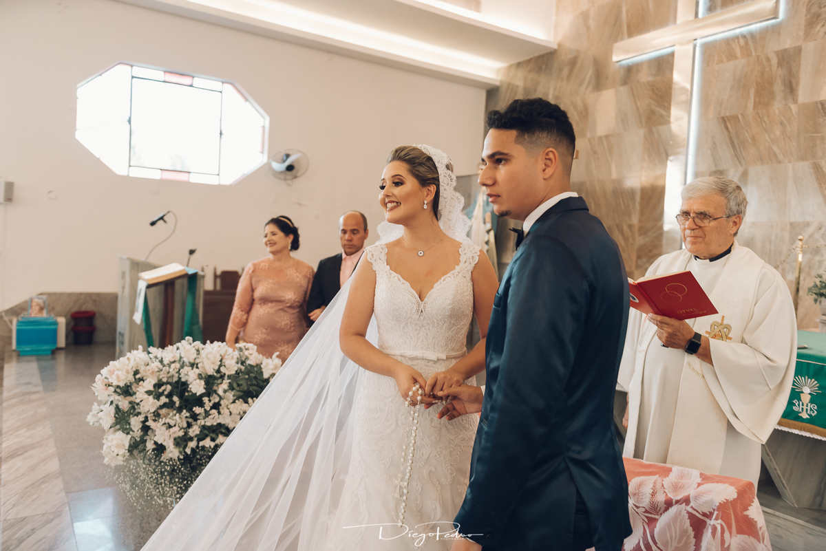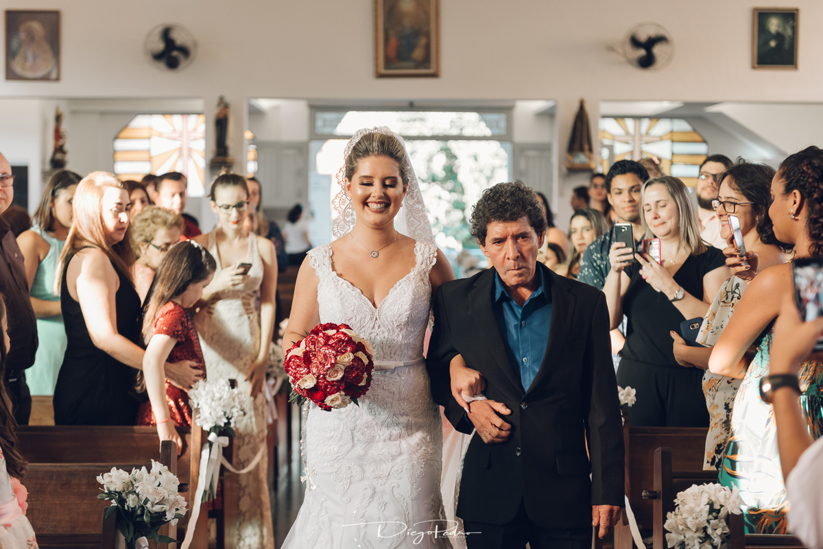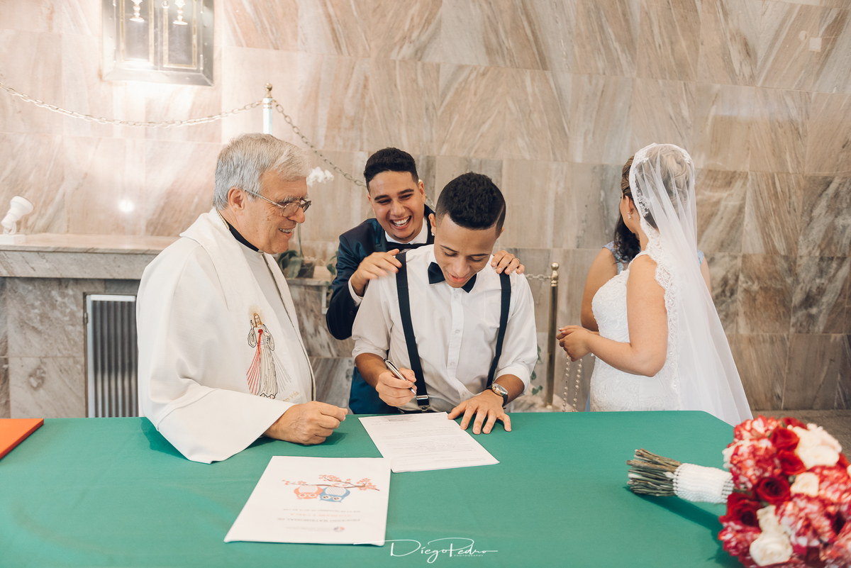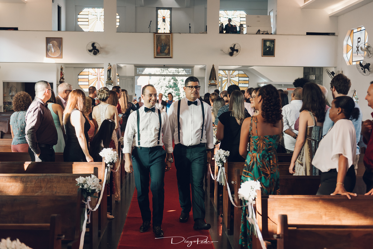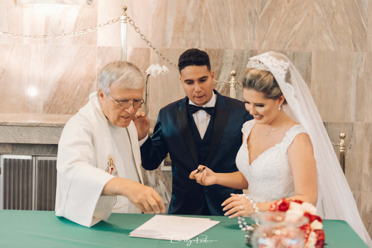 Chegando no local da Igreja tudo ocorre perfeitamente bem, padrinhos e madrinhas todos muito bem alinhados e organizados, além de felizes por estarem ali. E Guilherme já aguardava a chegada de Carla, era um misto de ansiedade e preocupação para não atrasar, pois nas igrejas católicas na maioria tem isso, se atrasar paga a mais, rs mas correu tudo direitinho, saí de lá as pressas quando terminou a cerimônia, para poder conseguir logo uma vaga para estacionar o mais próximo possível da entrada do salão de festa, que por sinal já fotografei diversas vezes lá no Espaço Luz.