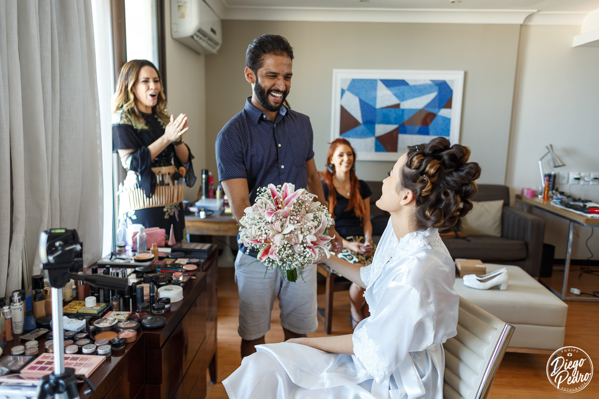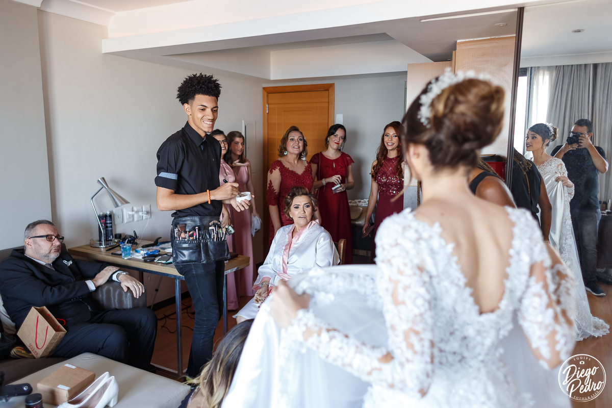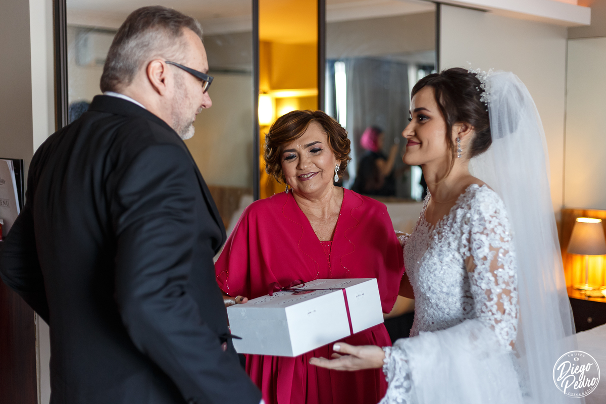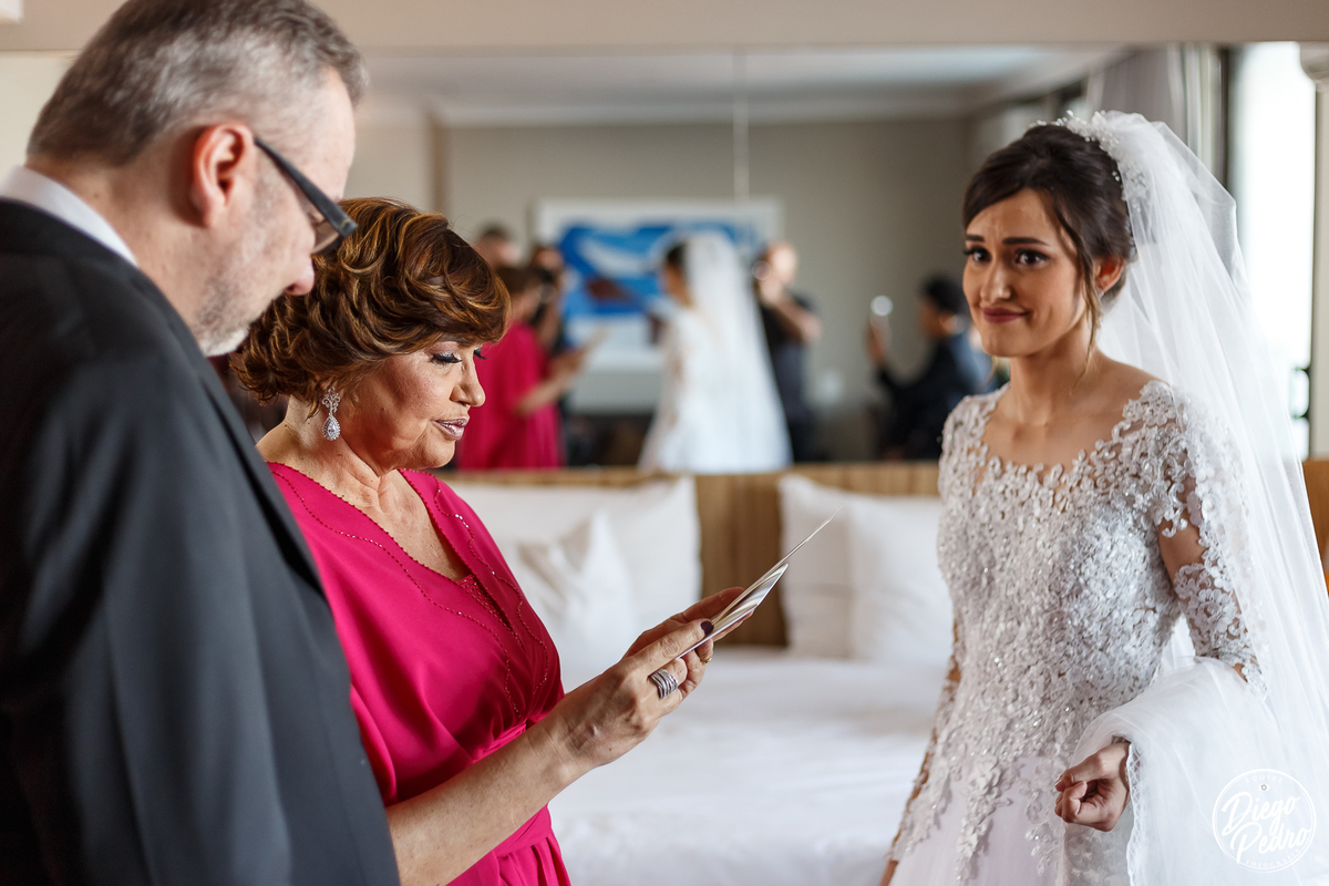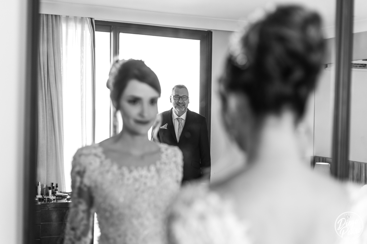 Com Karine e Gabriel não seria diferente, senti tudo aquilo que descrevi acima, e foi um casamento de arrepiar desde o making of quando Karine recebe de seu noivo uma carta como é de costume deles presentear todos os meses um ao outro com cartas de amor e no dia do casamento não foi diferente, Karine ficou muito emocionada com o ato de seu noivo, e após isso quando estava pronta foi a vez dela presentear seus pais, gente que cena linda de se ver, todos com os olhos marejados, fizemos dela já toda pronta e partimos para a cerimônia, eus nunca tinha feito fotos na capela que eles escolheram e que visual, tudo muito lindo e arrumado de forma impecável.
