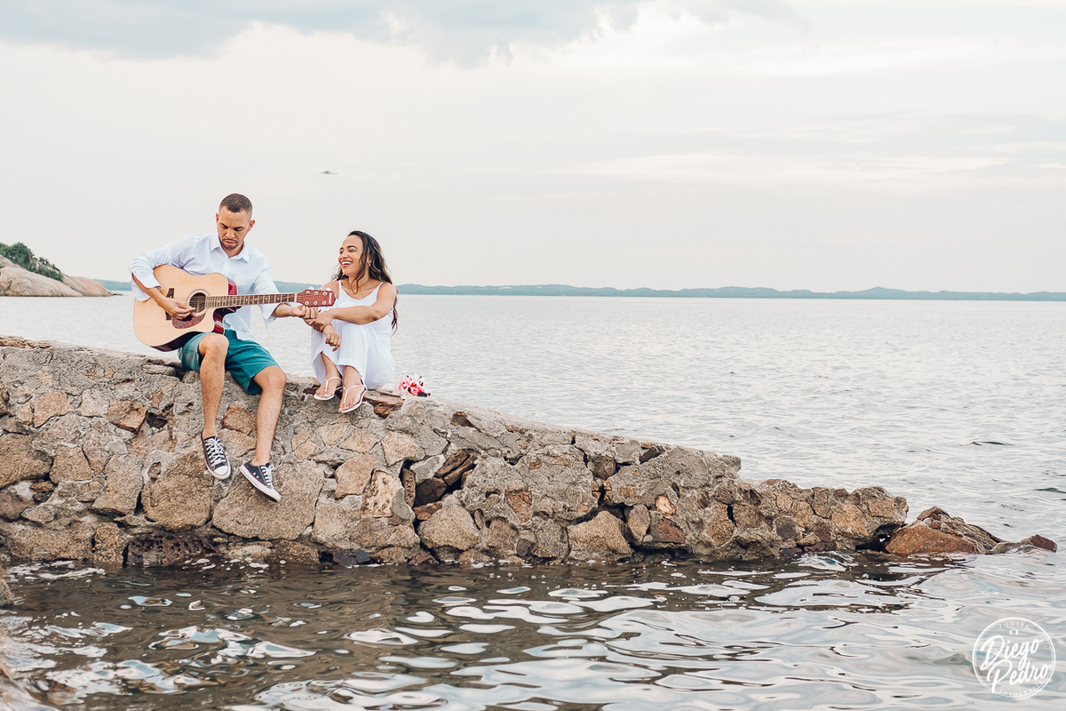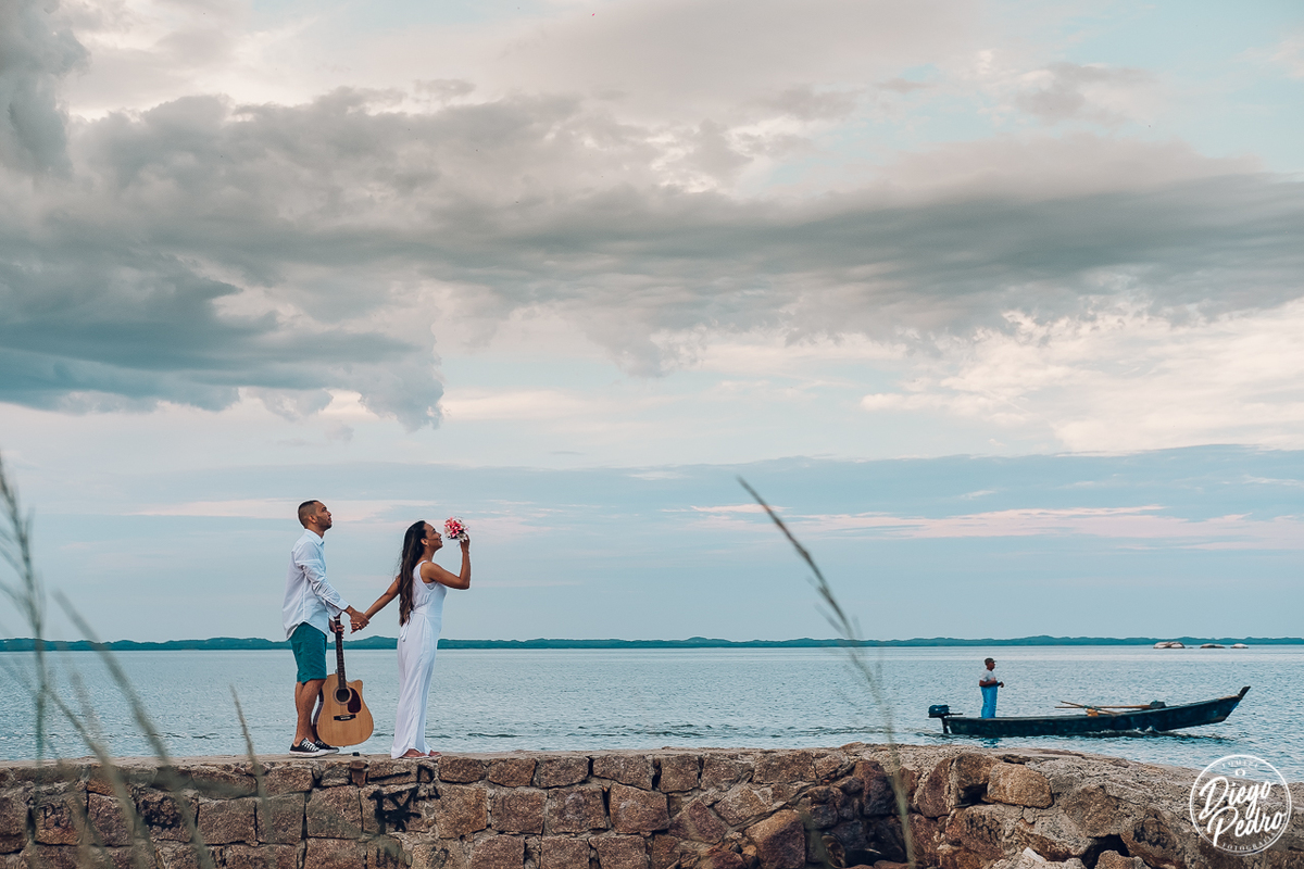 Quando Isabele me pediu opinião sobre lugar de fazer as foto, logo sugeri fazer na Pedra de Guaratiba, pois que ninguém vai pra lá para fotografar, sendo que tem um dos visuais mais bonitos do Rio de Janeiro. Ficou um pouco indecisa, mas quando comecei a mostrar o resultado já ali na hora mesmo logo após ter feito o clique daí se amarraram, e um local que tinha tudo a ver com o casal pois Isabele curte vegetação, enquanto o Lincon gosta de mar, pronto uniu os dois ambientes e todos felizes rs.
